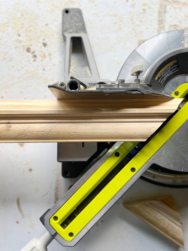 The next step is to make the frame! I used my miter saw to cut 45 degree angles. If you don’t have a miter saw, you can use a miter block and saw!